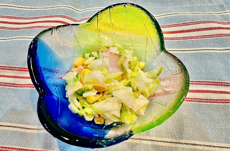 作っている最中に娘がやってきて、切ったはしからキャベツやハムをつまみ食いしていきました。(つまみ食いってなぜかいつも以上においしいですよね。)
